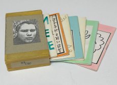 Sieben Hefte in Schuber aus Graupappe, jeweils nummeriert (auf der Box und auf der letzten Seite der einzelnen Hefte), einseitig bedruckt
